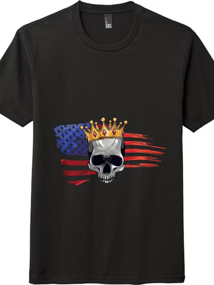 Мужская футболка с коротким рукавом с графическим принтом «Американский флаг, череп с короной, «Без королей»»