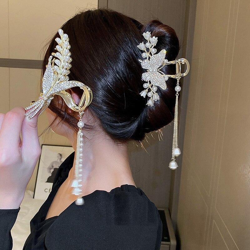 Новинка 2023 года, заколка для волос с кисточкой из пшеничного жемчуга, винтажная заколка для волос со стразами, заколки, античная шпилька для женщин, аксессуары для волос, подарок