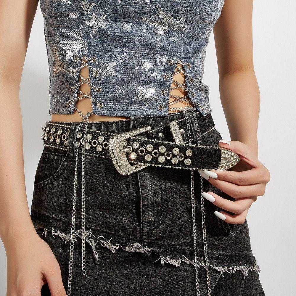 Цинк Цинковый сплав Блестящий ремень Y2K Пояс Панк Стразы Декоративные Джинсы