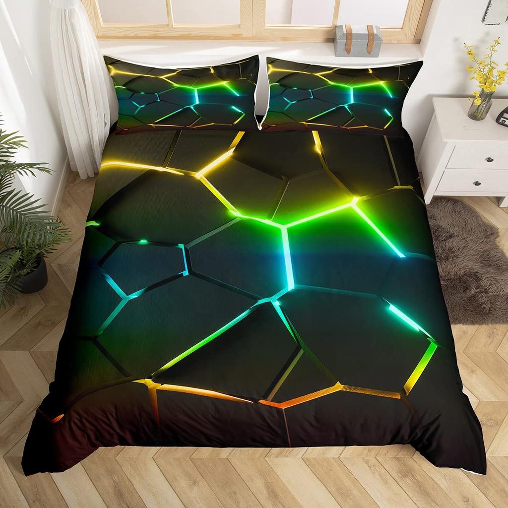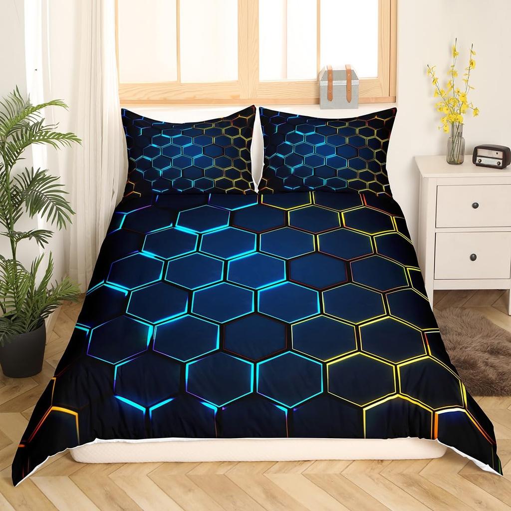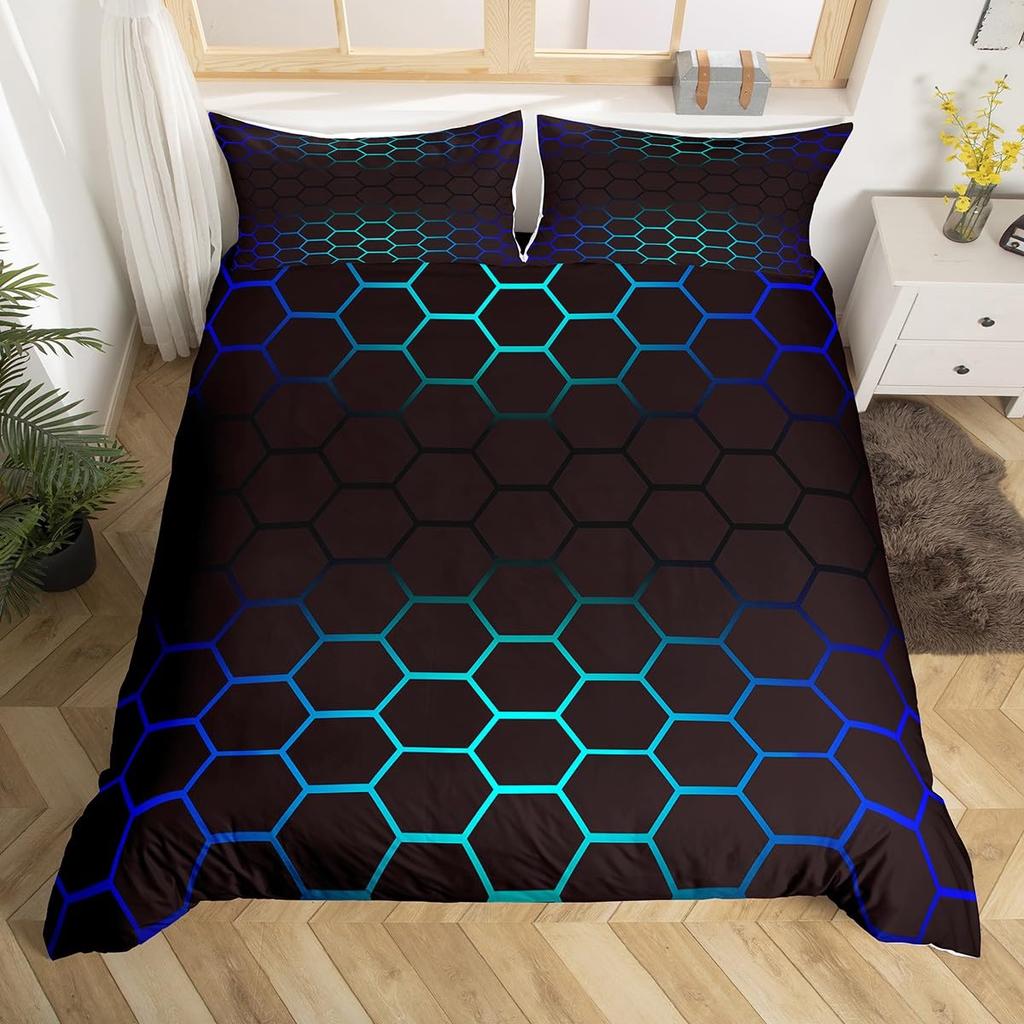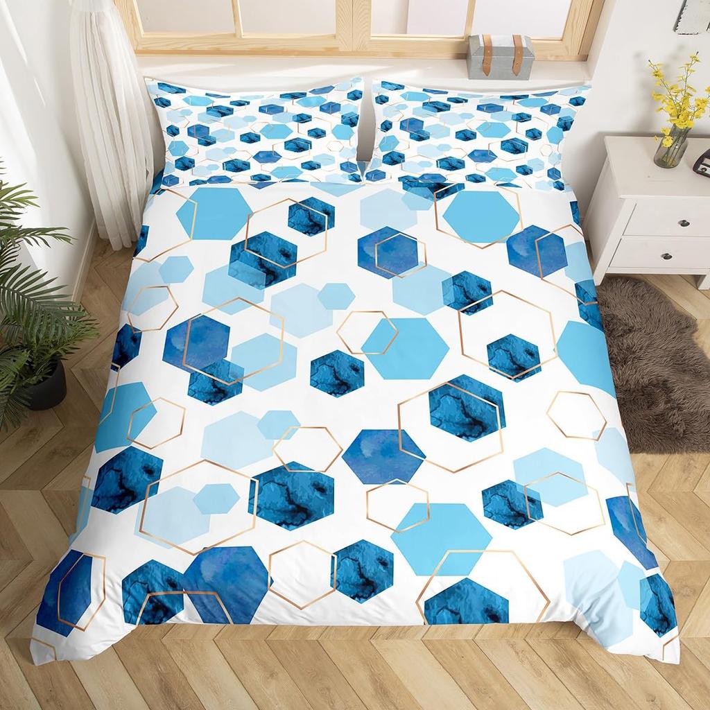 Шестиугольное Геометрическое Пододеяльник Темно-синий Чехол на Одеяло Акварельный Сотовый Абстрактный Тай-дай Комплект Постельного Белья Микрофибра Чехол на Одеяло