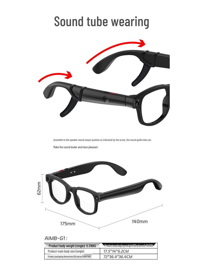 Умные очки AIMB-G1: Распознавание ИИ, Перевод, Стабилизированная HD-камера для видео и фото
