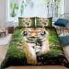 Tiger Comforter Cover Set 3D Tiger Lying on The Stump Pattern Duvet Cover with Zipper Ties Wild Animal Theme Bedding Set for Kid