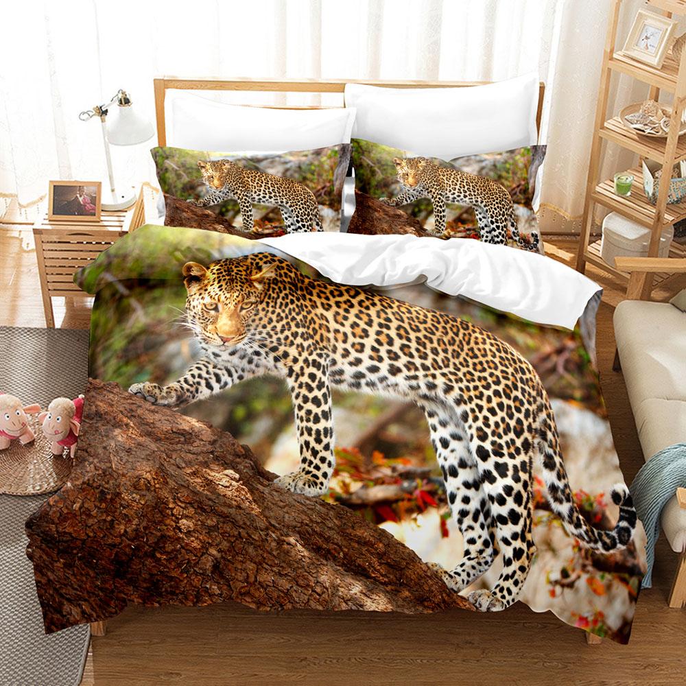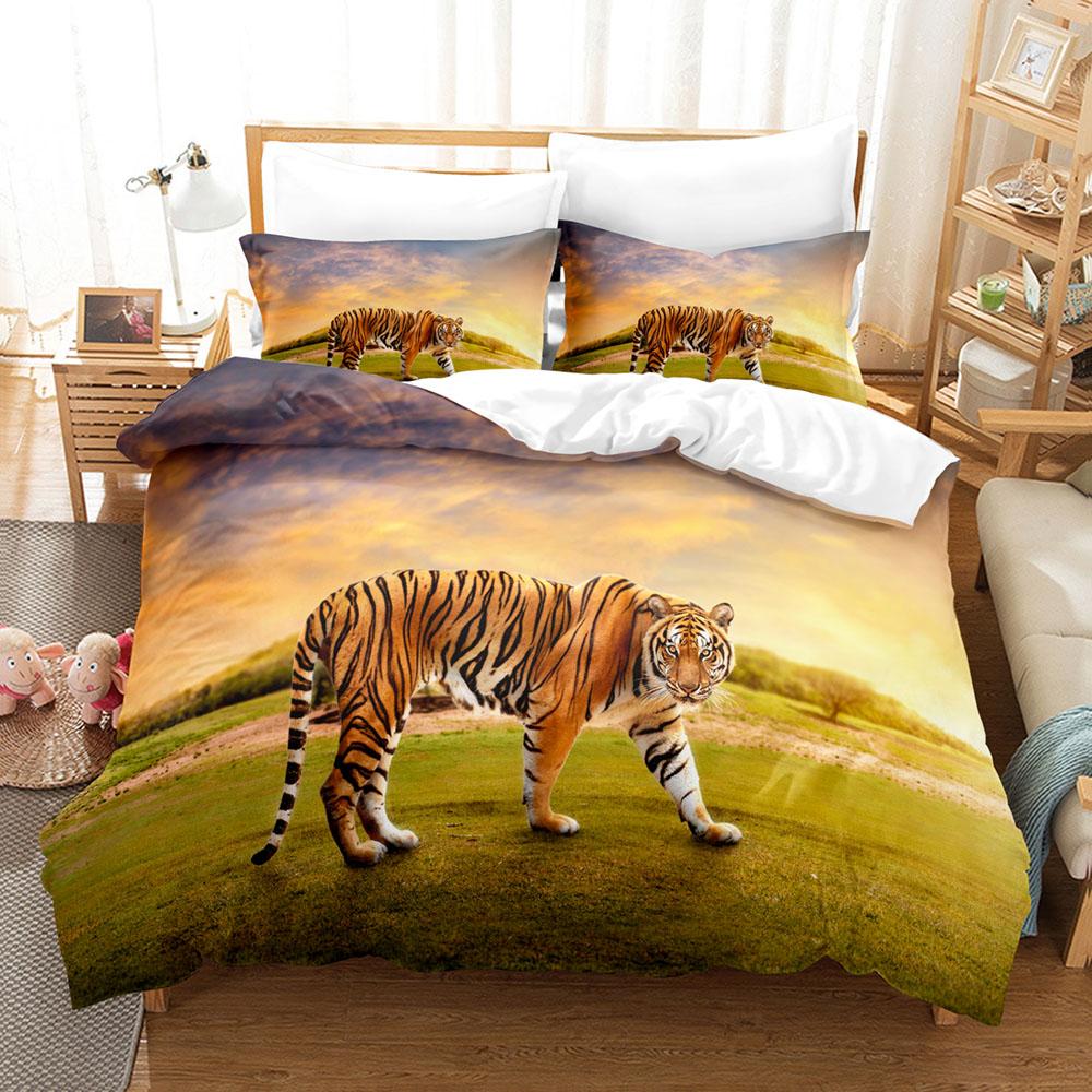 3D Набор постельного белья с рисунком тигра и леопарда, завязки, тематика «Король джунглей», пододеяльник для мальчиков, подростков, подарки, размер Full