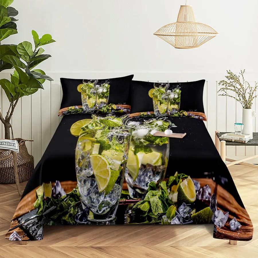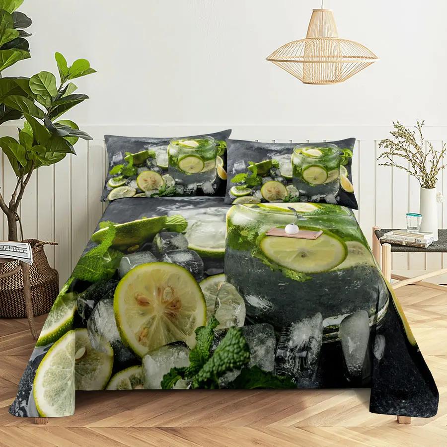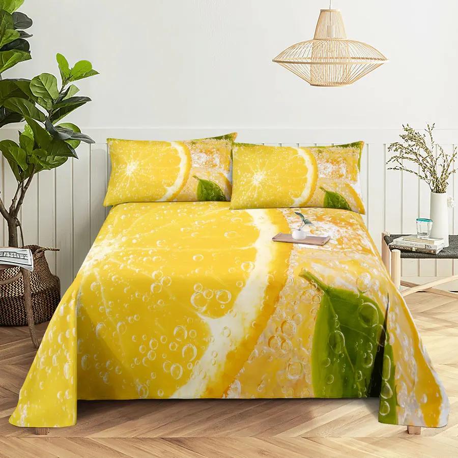 Комплект простыней и наволочек с фруктовым принтом для кровати размера Queen, King, Комплект постельного белья с лимонным принтом, Наволочка для двуспальной, полуторной, полной, односпальной кровати, Бесплатная доставка