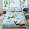 Пододеяльник с изображением тюленя размера King, милый комплект постельного белья с изображением тюленя, милый экзотический стиль океана, 2/3 шт., полиэстеровое одеяло с изображением морской жизни