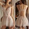 Сексуальный принт с бантом Белый Прозрачный Женский Секс Жемчуг Глубокое V Газ Открытая Промежность Стринги Комплект Нижнего Белья Эротические Бэбидоллы Ночная Сорочка Платье