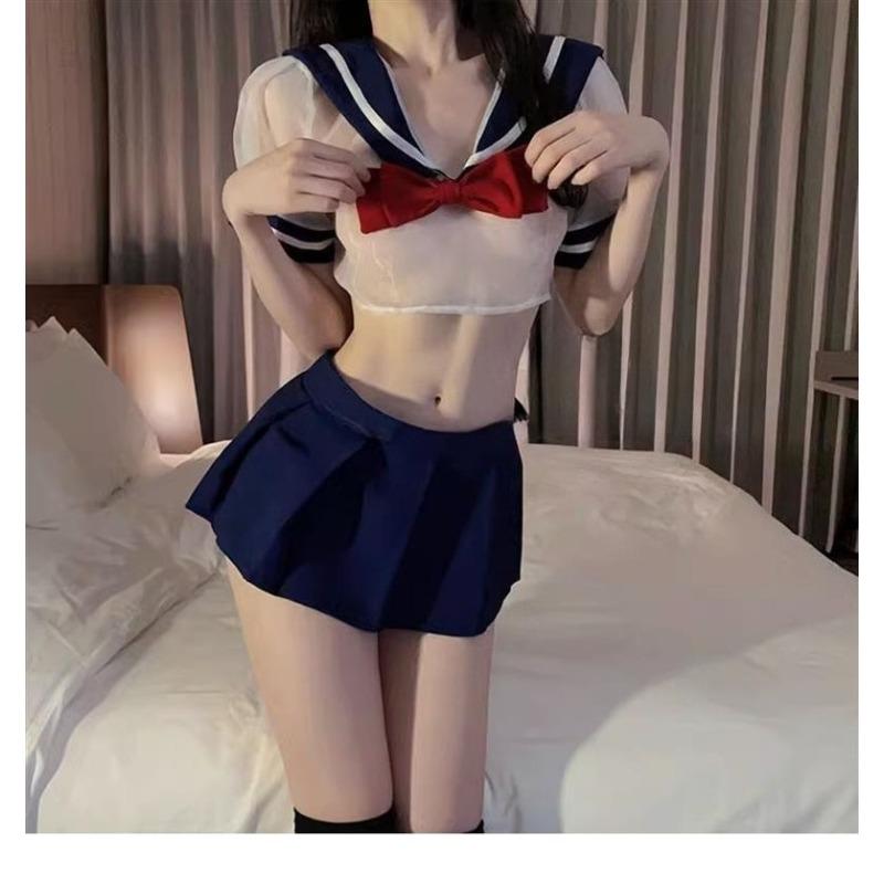 Нижнее белье Облегающее Студенческая Матросская Форма Прозрачный Бант Полый Короткий Дизайн Сексуальная Женская Сексуальная Униформа Соблазнительный Комплект