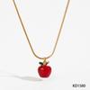 Милый Модный Покрытый Титановой Сталью 3D Капля Масла Яблоко Ожерелье Серьги Фруктовая Серия Аксессуары Подвеска Ожерелье Красное Яблоко Ювелирное Изделие