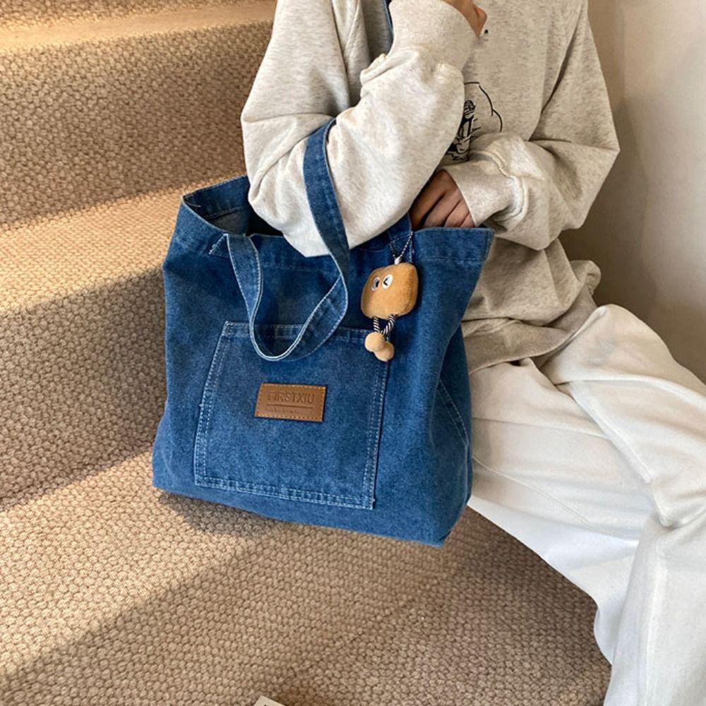 Джинсовая сумка через плечо большой вместимости, ретро-повседневная сумка-тоут, школьная сумка, ковбойская сумка под мышкой, женская