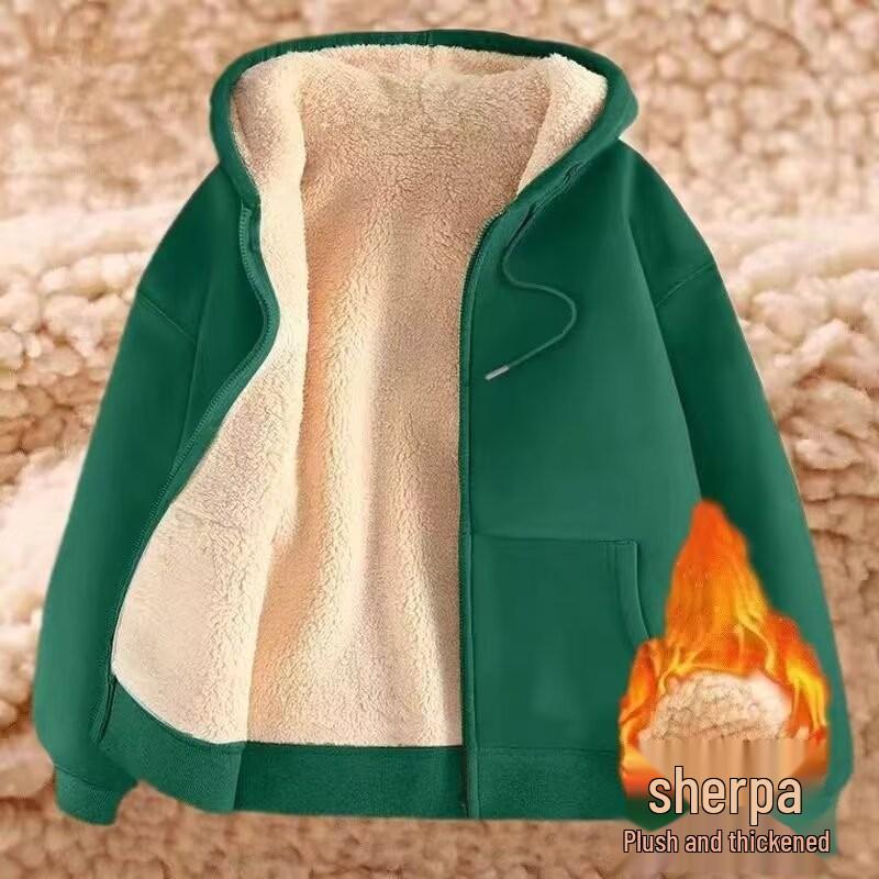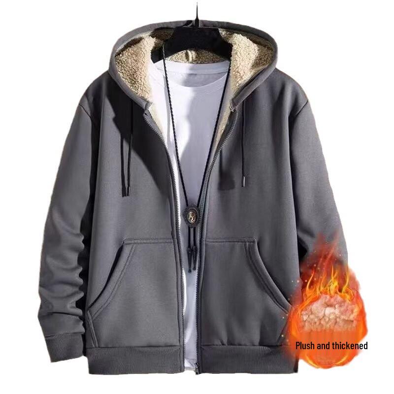Мужская куртка с капюшоном из овчины - Толстовка из плотного бархата, Однотонный молодежный кардиган на осень и зиму