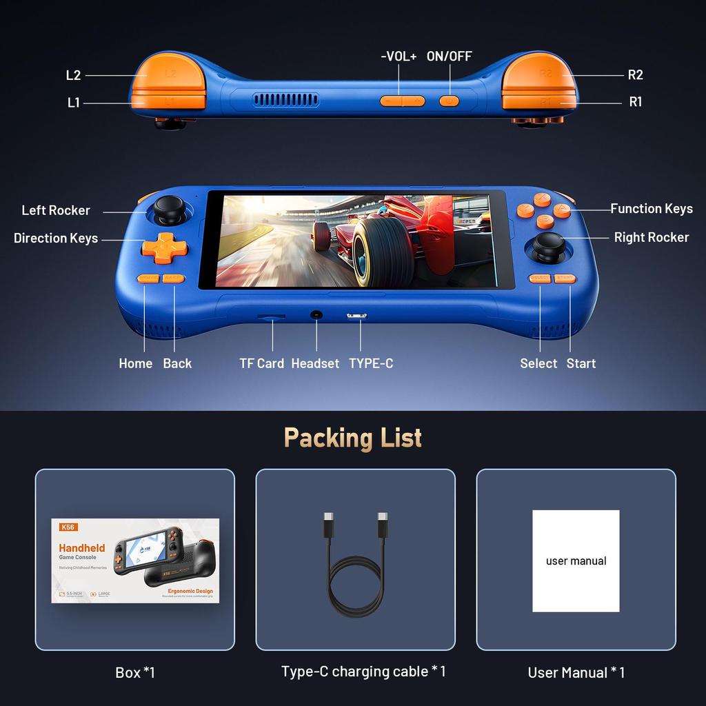Ретро игровая консоль K56: Android 14, HD ISP-экран, Игровой автомат в стиле PSP и N64.
