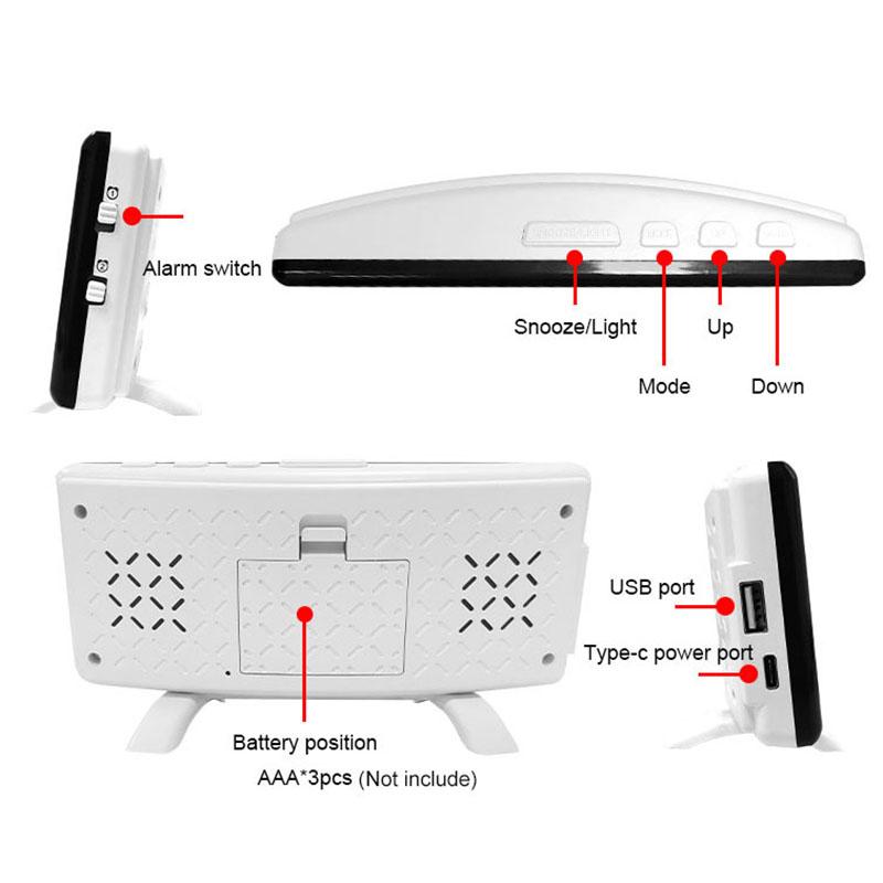 Цифровой будильник с большим светодиодным дисплеем Современные электронные настольные часы для спальни, офиса, ванной комнаты, прикроватной тумбочки, кухонного декора