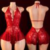 Сексуальная ночная одежда без ластовицы для секса для женщин кружевной лоскутный прозрачный пижамный комплект эротические тедди куколка боди с глубоким V-образным вырезом на бретельках