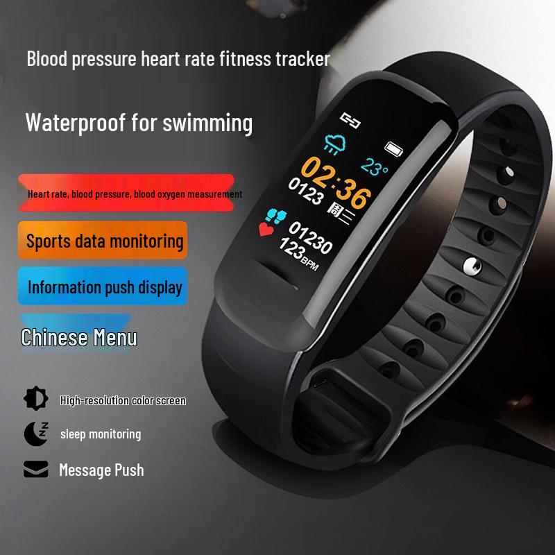 Водонепроницаемые умные спортивные часы C1 для электронной коммерции с монитором артериального давления и пульса, Bluetooth-шагомером и цветным дисплеем.