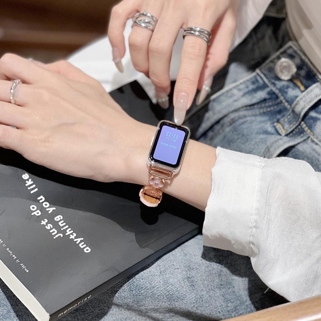 Премиальный женский кожаный ремешок с четырехлистным клевером для Huawei Band 10, совместимый с Band 8/9