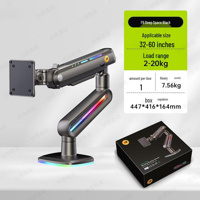 NB F6 RGB Gaming Monitor Arm, 20KG Load, 32-60 inch, Deep Space Black