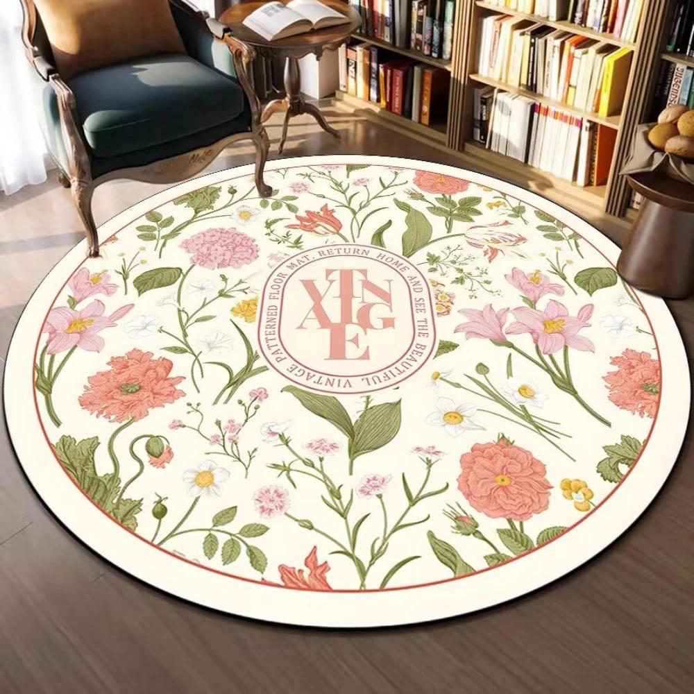 Элегантный круглый ковер с цветочным узором во французском стиле, ковер для дивана в гостиной, домашний декор, мягкий ковер у кровати в спальне, ковер-корзина, коврик для чтения и йоги