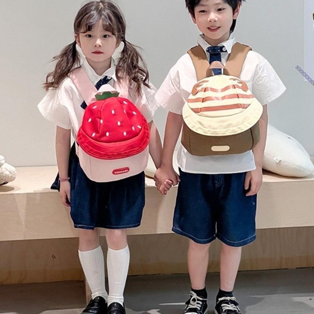 Клубничный мультяшный рюкзак из ткани, студенческая школьная сумка, портативный детский рюкзак для путешествий