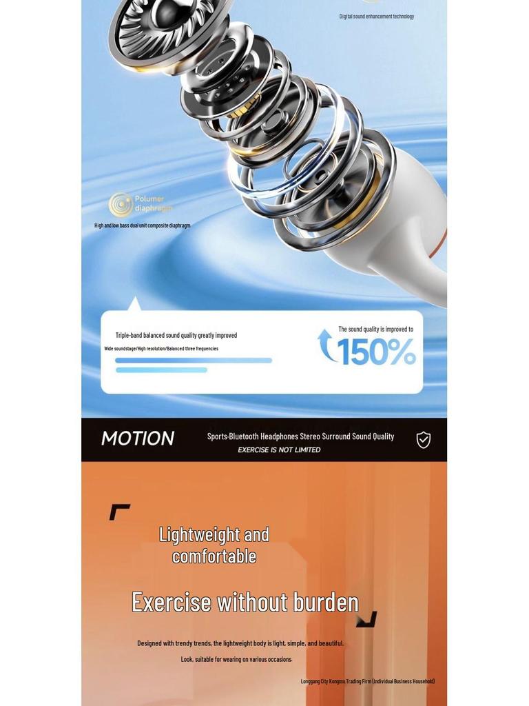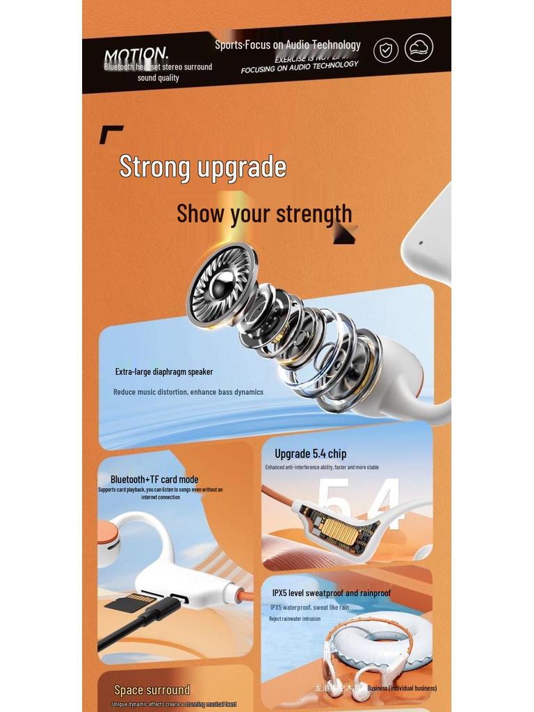 Наушники Bluetooth с костной проводимостью - Безболезненное ношение, Долгое время работы от аккумулятора, Спортивный заушник