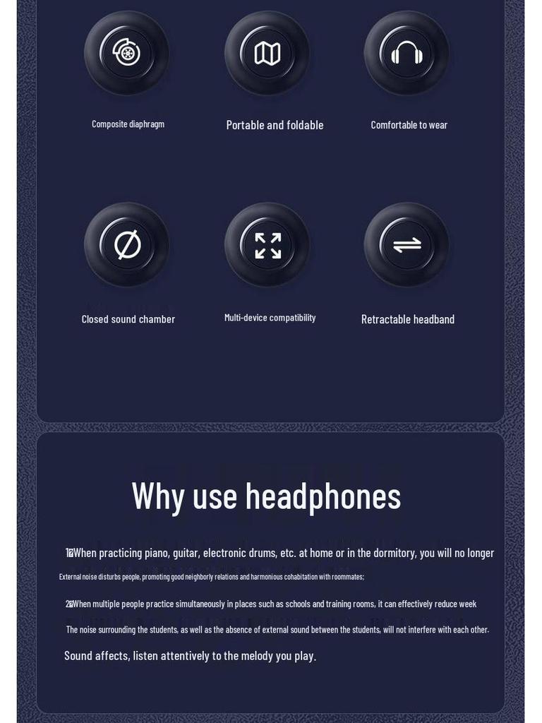 Универсальные накладные наушники для электроклавишных, гитары и фортепиано (Кабель 2м-3м, адаптер 6,5 на 3,5 мм)