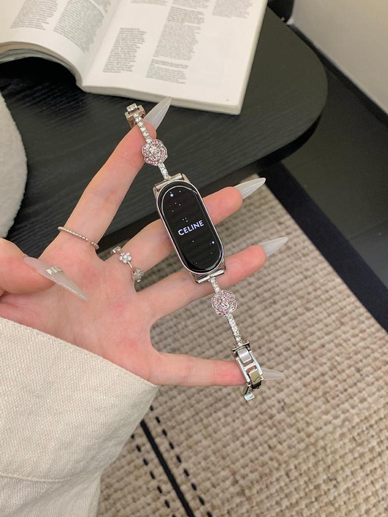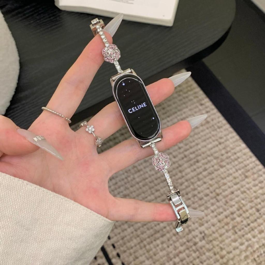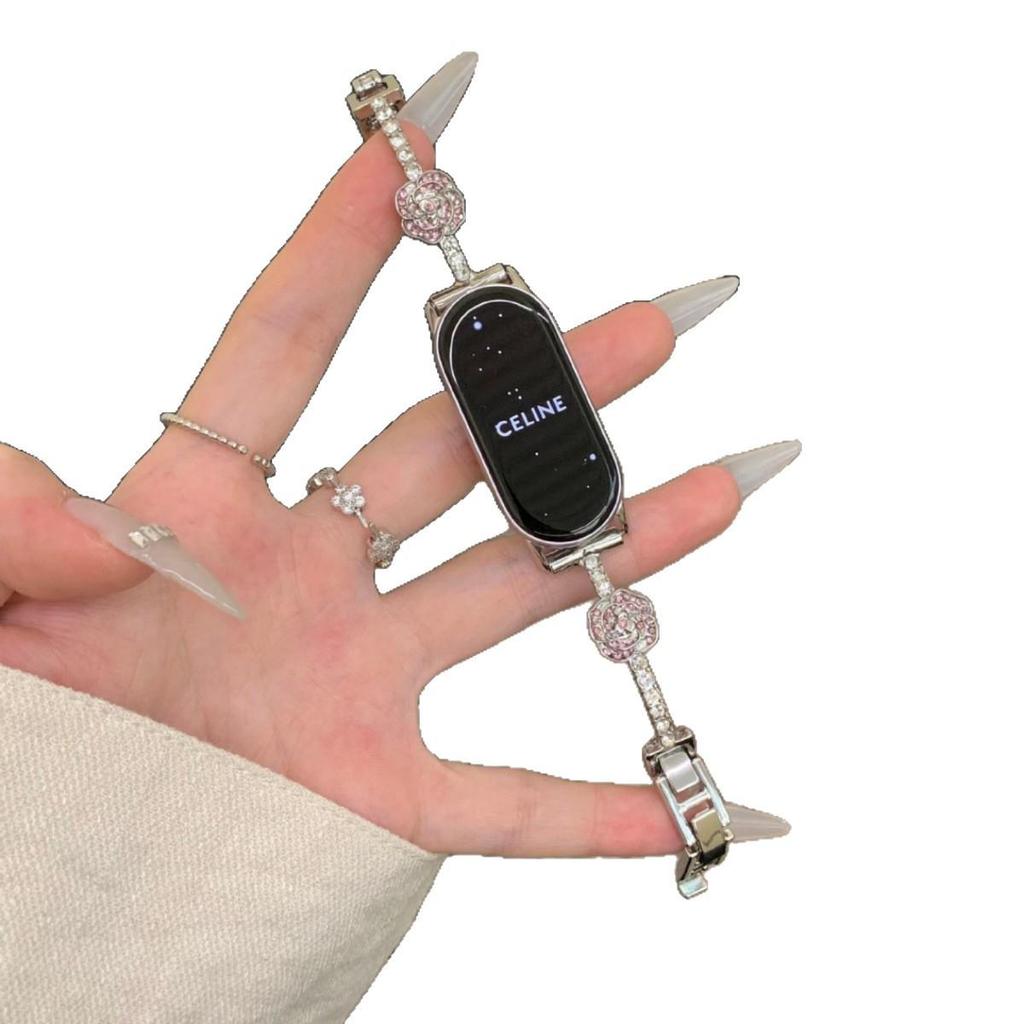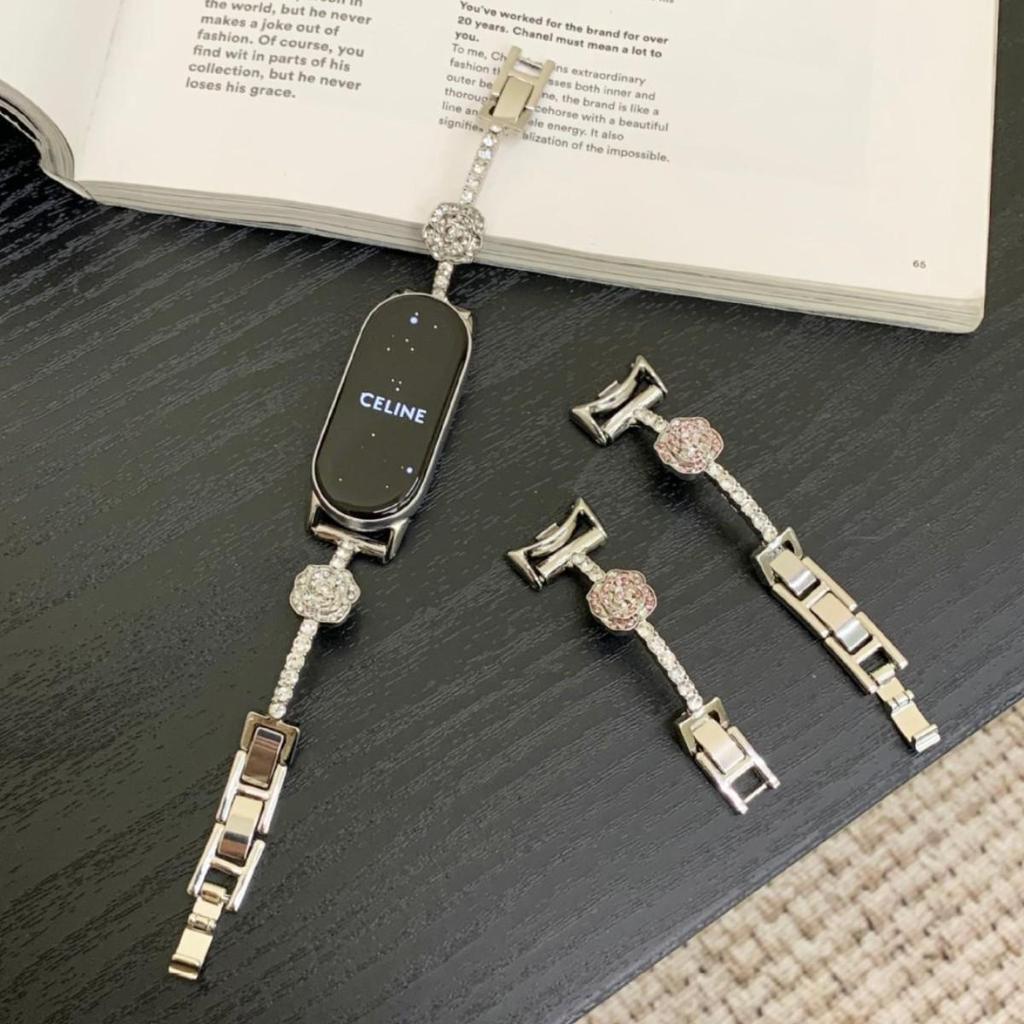 Браслет с бриллиантом Камелия для Redmi Watch 4/5 и металлический ремешок для Xiaomi Smart Band