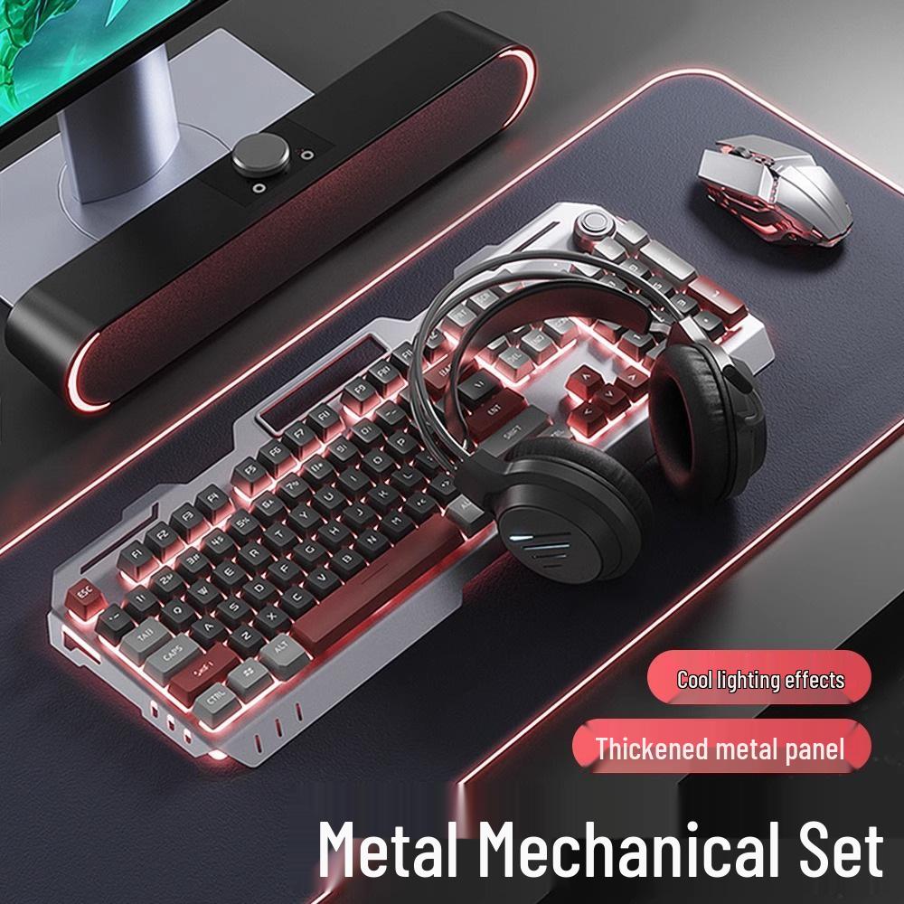 Мужской проводной игровой комплект: Механическая клавиатура, мышь и гарнитура для использования на рабочих местах в киберспорте и интернет-кафе.