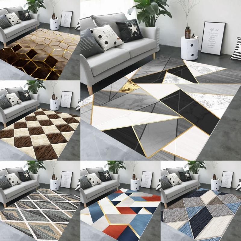Ковер с геометрическим узором, напечатанный на 3D-принтере, скандинавский минималистичный дизайн, коврик для гостиной, ковер, домашний декор, золотой акцент, декор для пола под диван