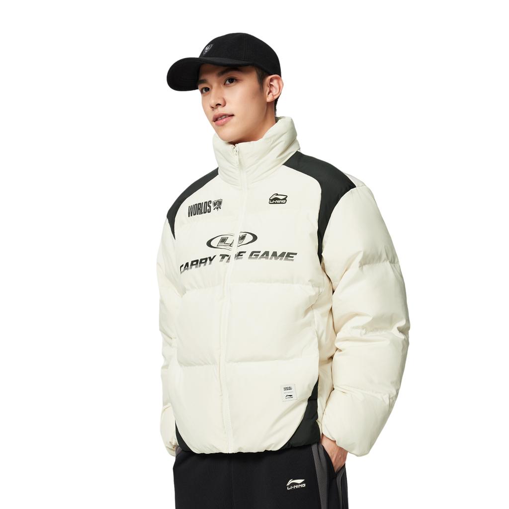 Li Ning Теплая Куртка Пуховик С Буквами Стойка Воротник Свободного Кроя Мужская Верхняя Одежда AYMV257-1