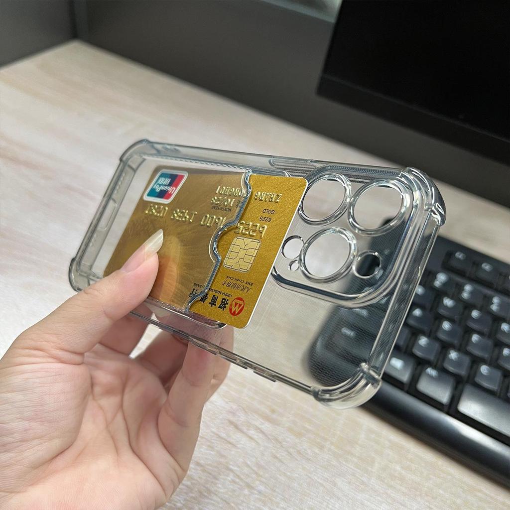 Прозрачный черный чехол для iPhone 16 Pro Max со слотом для карт и держателем