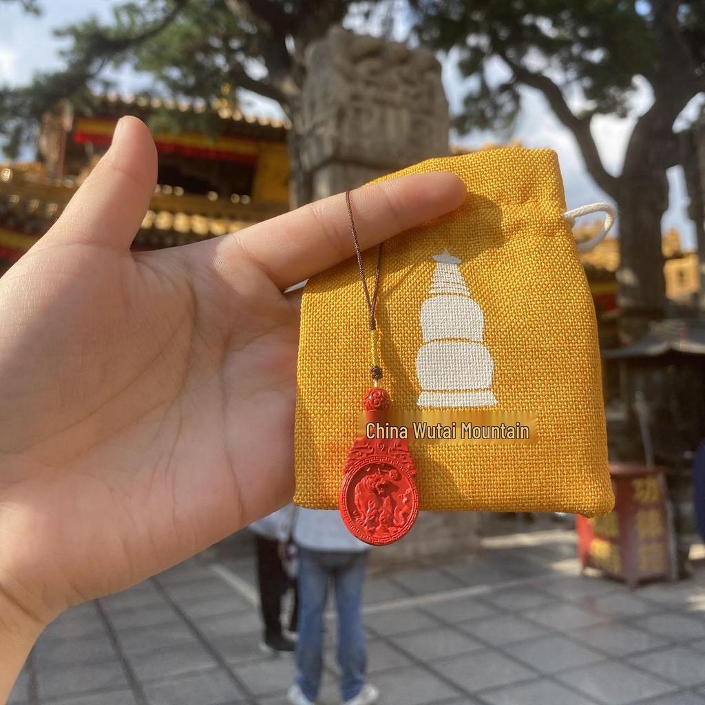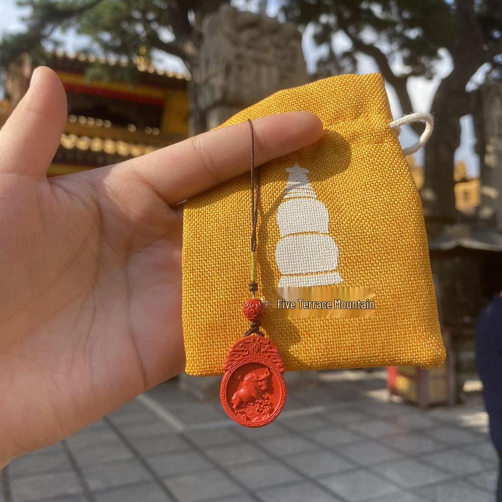 Wutai Cinnabar Zodiac Buddha Keychain Charm for Car, Bag, Phone - Year of Peace Gift