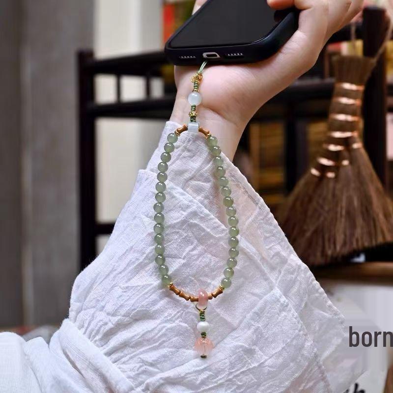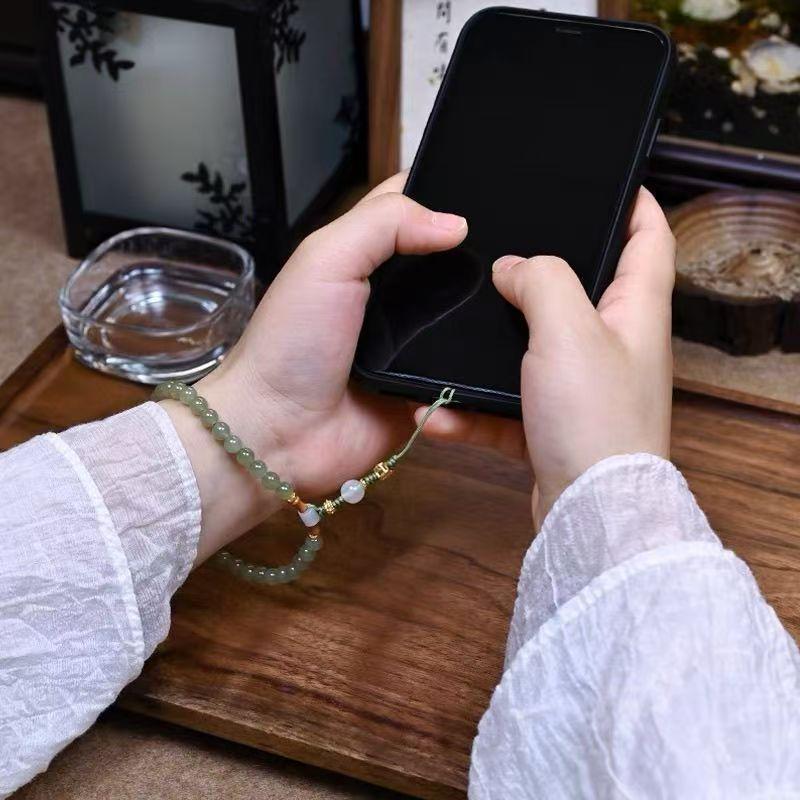 Авантюриновый бисерный люксовый ремешок для мобильного телефона - На запястье, защита от падения, длинный стиль