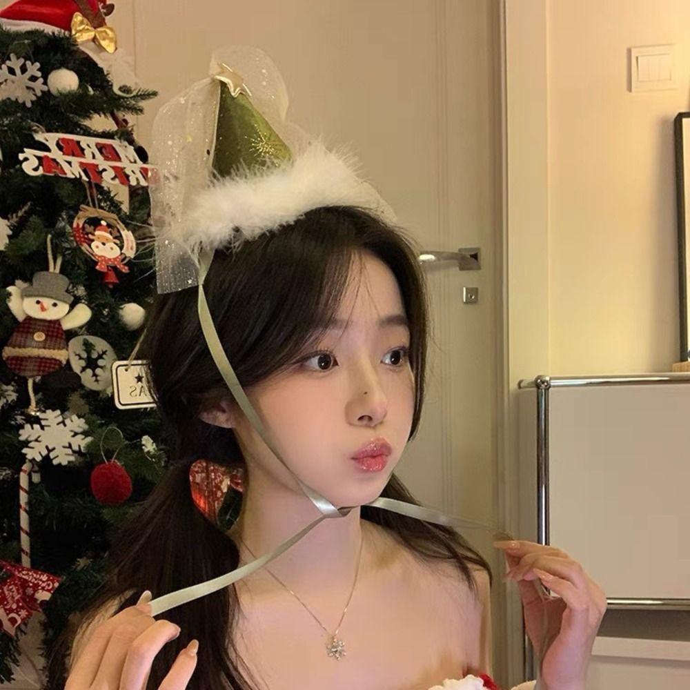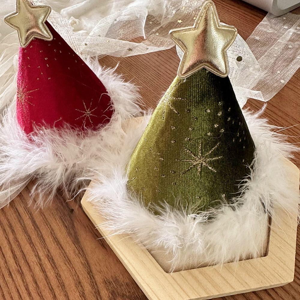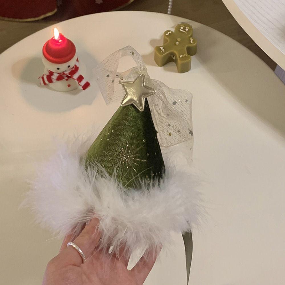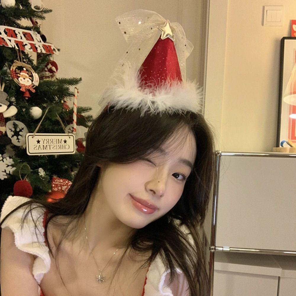 Красная рождественская шляпа с лентой, заколка для волос, рождественская повязка на голову с перьями, Рождественский костюм, наряд