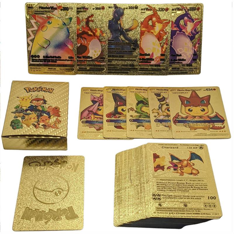 Металлические карты Золотая карта энергии Чаризард Пикачу Коллекционная карта Битва