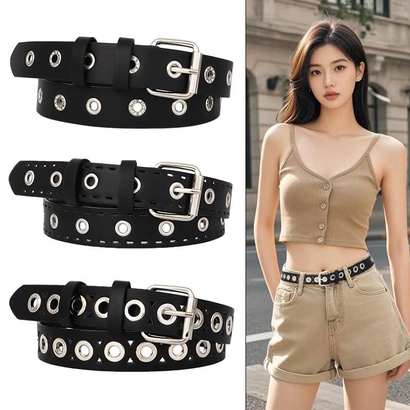 Пояс в панк-стиле, металлический, цельный, с отверстиями, для женского повседневного образа
