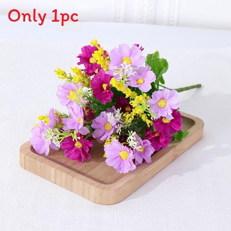 Этот букет из семи ромашек — универсальная и реалистичная искусственная цветочная композиция, предназначенная как для декоративных, так и для функциональных целей.. Изготовлено с тщательным вниманием к деталям, имеет высоту 30 см и доступно в различных цветовых вариантах, включая бело-зеленый, желтый, смешанный синий, смешанный фиолетовый, смешанный красный и розово-фиолетовый.. Прочные материалы обеспечивают долговечность и яркость, что делает его идеальным выбором для многократного использования в различных условиях.