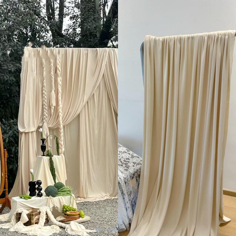 Beige Milk Tea, Champagne, and Avocado Green Wedding Backdrop Decoration - Retro French Style Photography Cloth