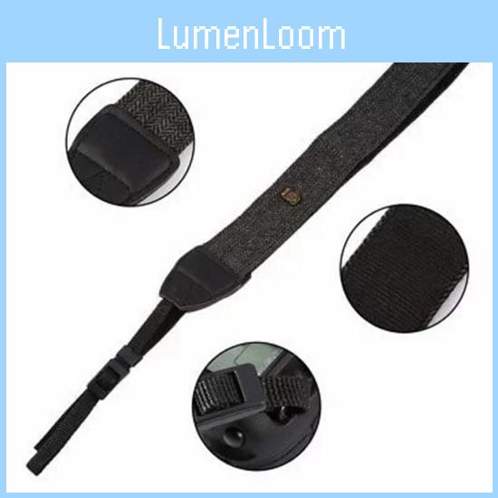Прочный и стильный ремешок, разработанный для зеркальных/однообъективных зеркальных фотоаппаратов (Nikon, Sony и т.д.). Имеет регулируемую длину для удобного ношения на плече или шее. Ткань черного цвета в полоску одновременно легкая и усиленная для дополнительной прочности, а мягкая секция снижает давление при длительном использовании.. Быстросъемные пряжки позволяют легко крепить/отсоединять, а противоскользящая конструкция надежно удерживает вашу камеру.. Идеально для фотографов, ценящих практичность и элегантный внешний вид.
