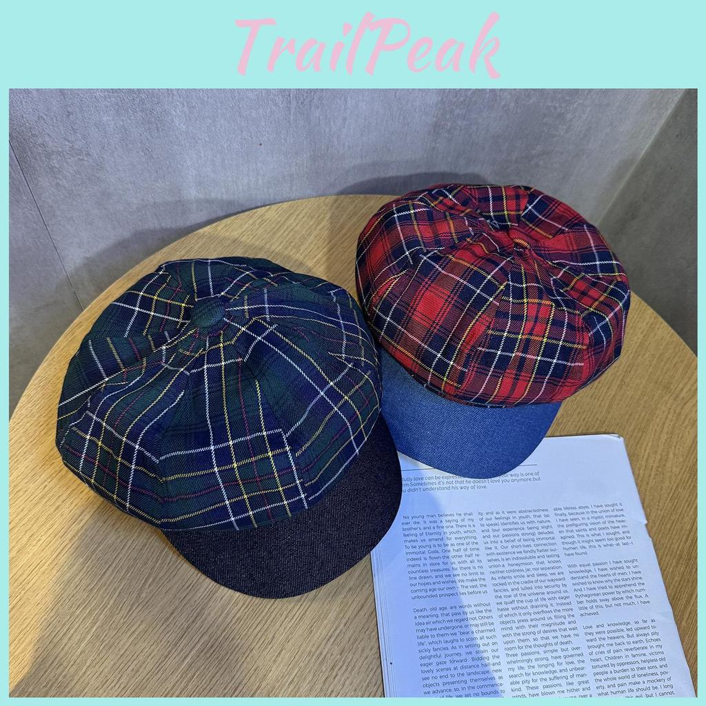 Ретро твиловая хлопковая беретка в клетку с изогнутым козырьком для повседневной носки