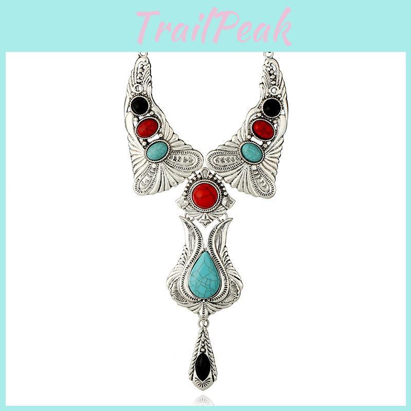 Это унисекс-ожерелье в винтажном стиле имеет смелый геометрический дизайн с подвеской из натуральной бирюзы.. Изготовлен из прочного сплава с гальваническим покрытием, Идеально подходит для повседневных выходов, путешествий или в качестве подарка, дополняет различные наряды. Для сохранения блеска протирайте мягкой тканью.