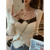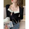 Пуловер с квадратным вырезом, сочетающийся по цвету, с рукавами-пузырями, женский, осенне-зимний, с темпераментом, знаменитый, облегающий, шикарный, базовый, вязаный свитер