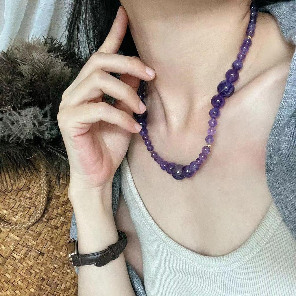Оригинальный дизайн, Натуральная лаванда, Аметист, Градиентное колье-улыбка, Женский чокер, Цепочка для ключицы Ветер