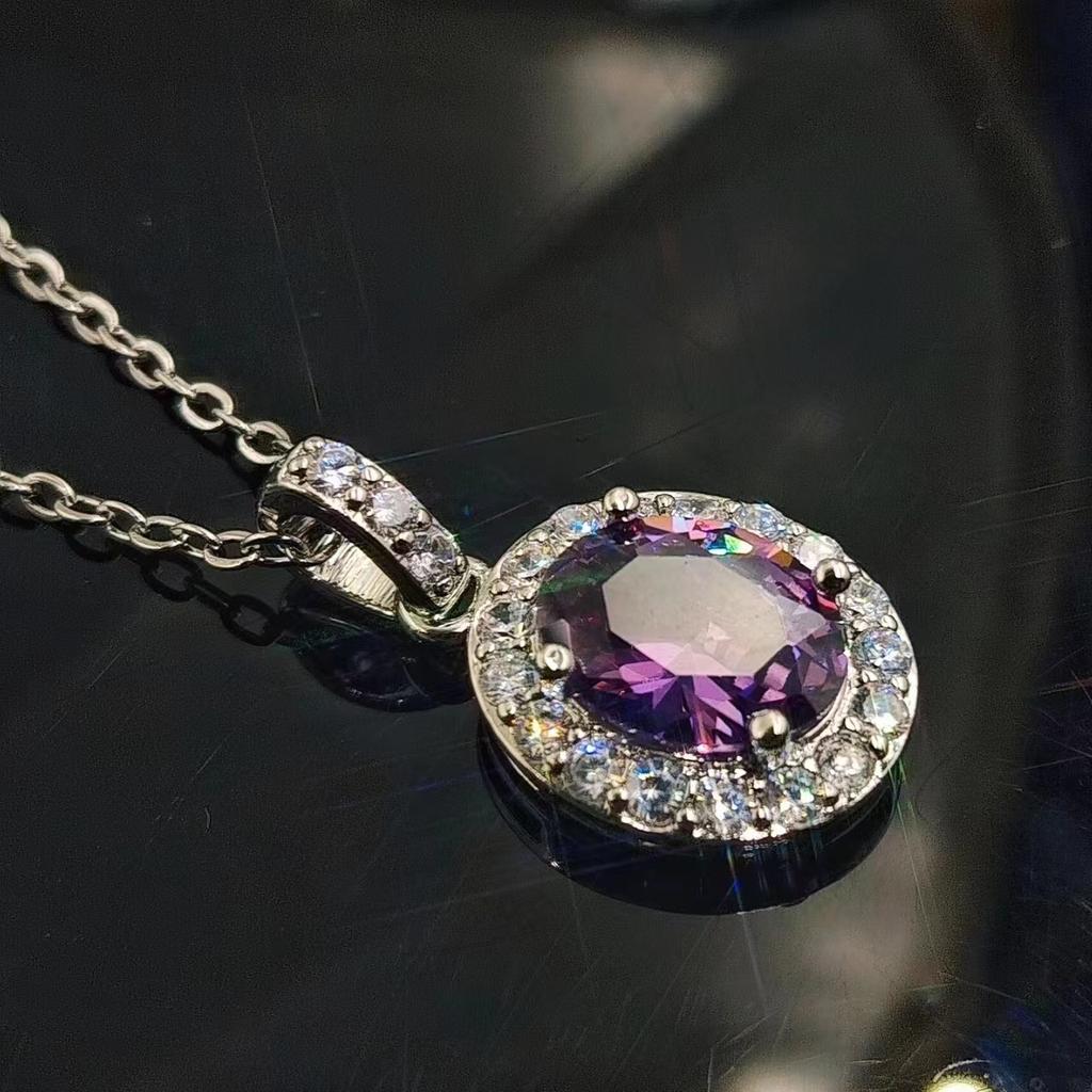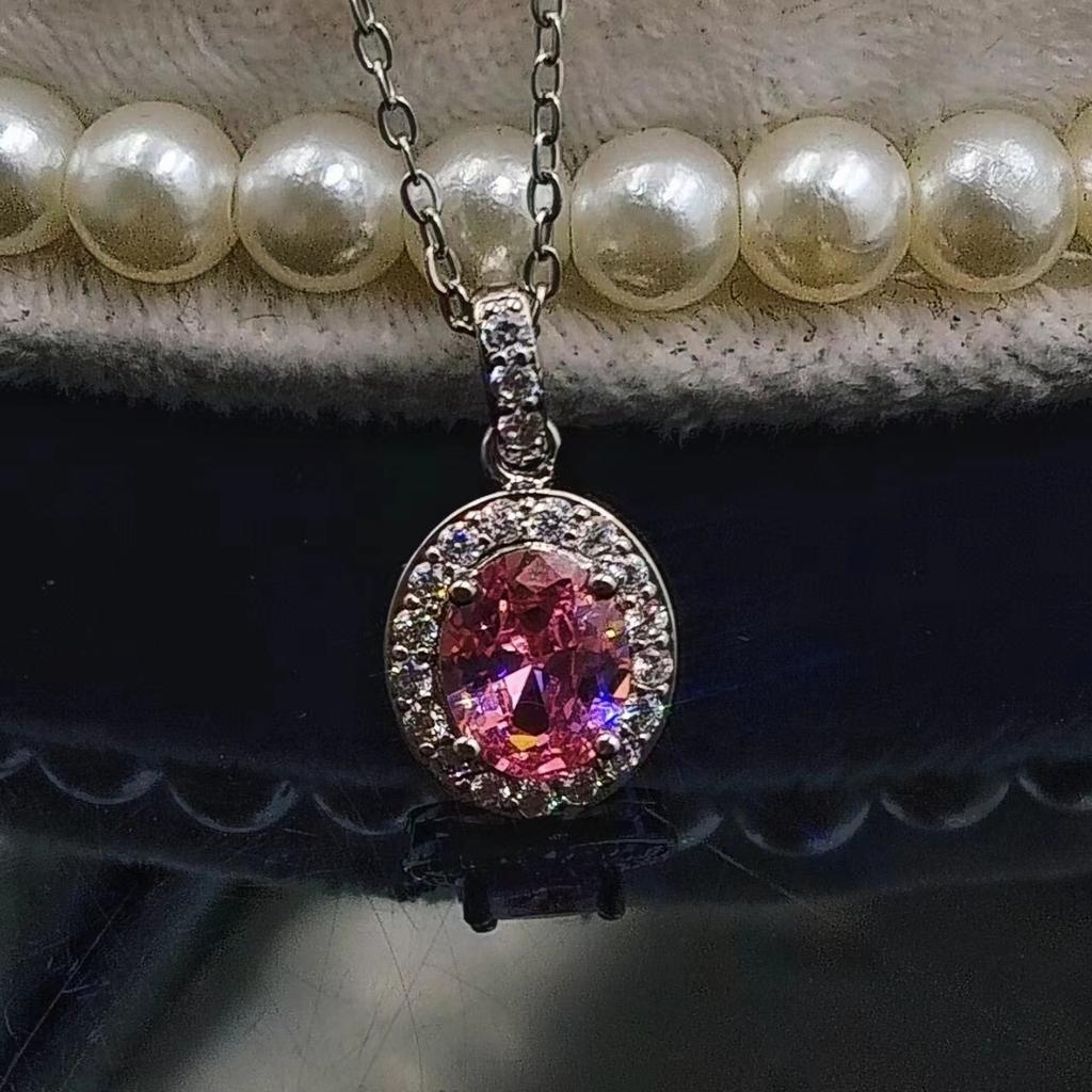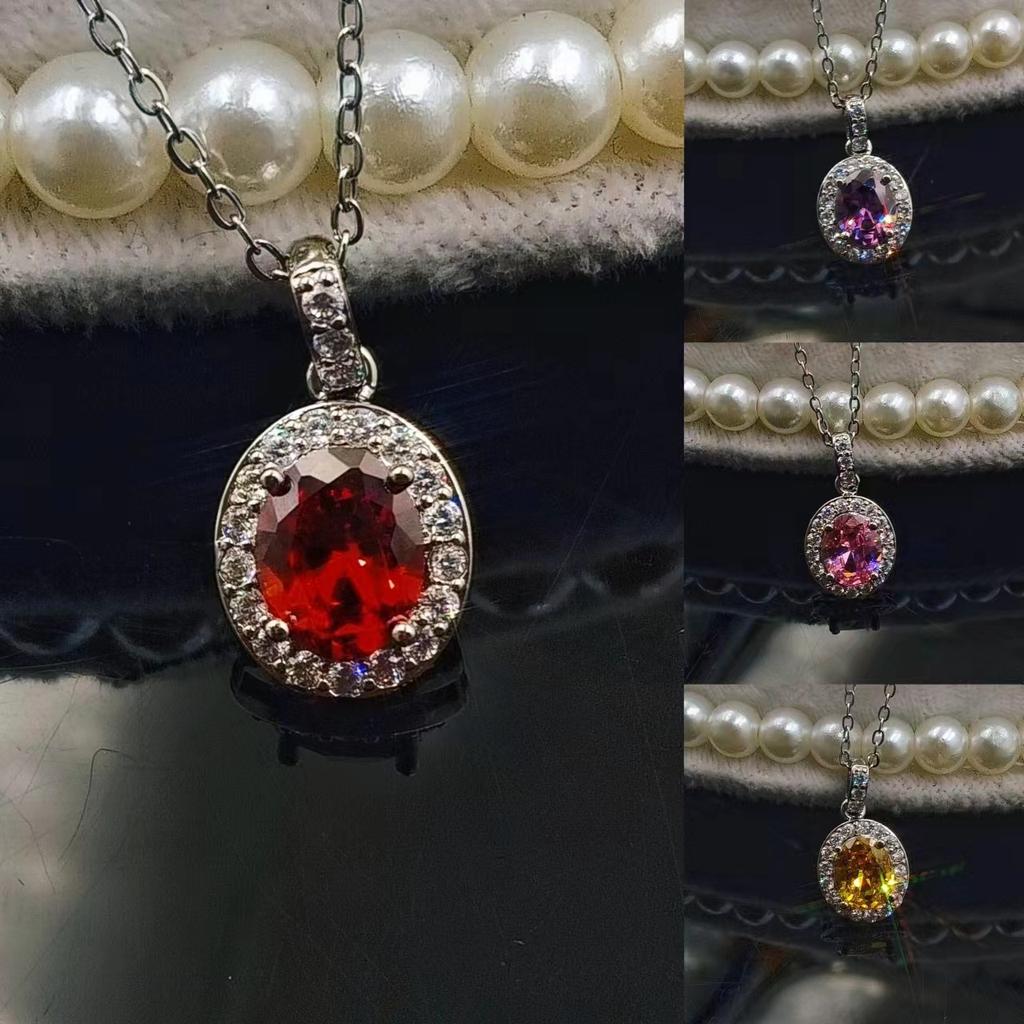 Ожерелье в виде имитации голубиного яйца, овальная группа инкрустированных цирконов, синтетический желтый бриллиант, кулон с розовым бриллиантом, цепочка для ключицы