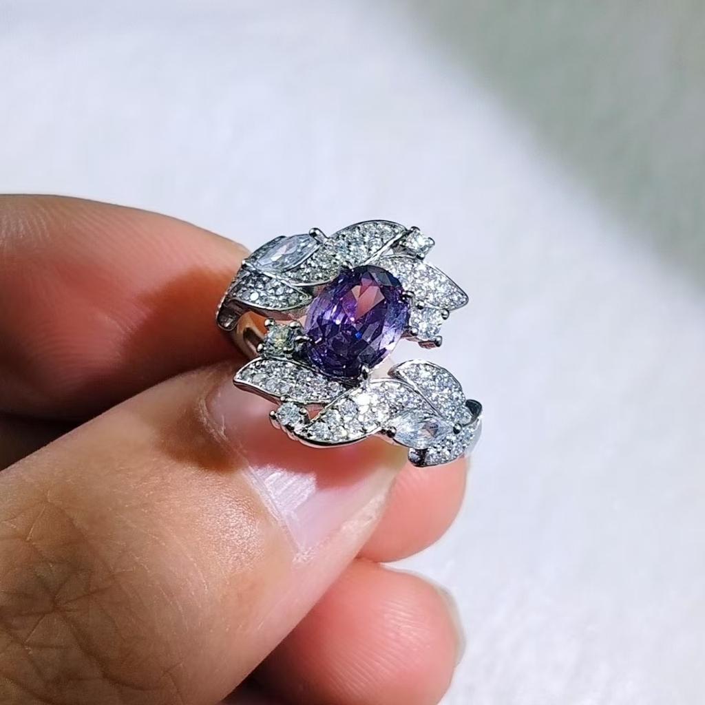 Яркое и красочное кольцо-дорожка с имитацией аметиста и цитрина, женское, кольцо с бриллиантами в форме листа