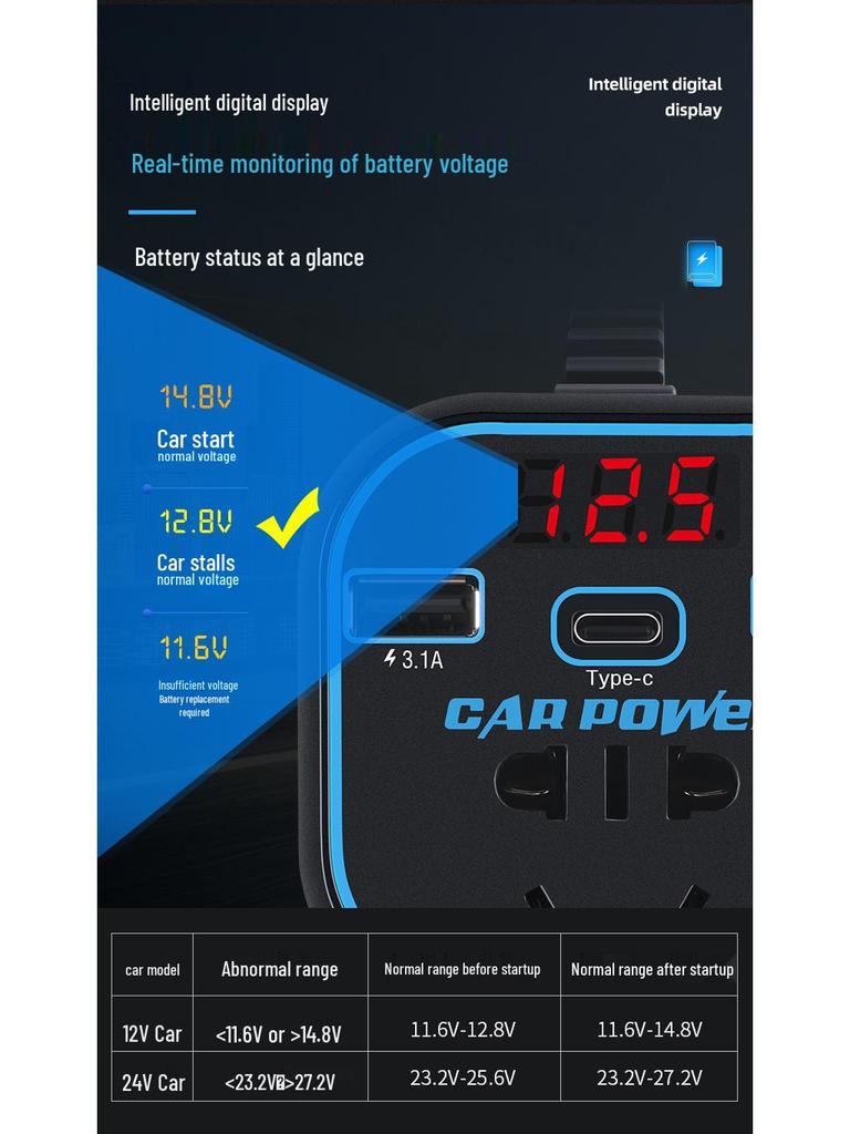 Автомобильный инвертор высокой мощности: Быстрозарядный трансформатор 12В/24В в 220В для грузовиков