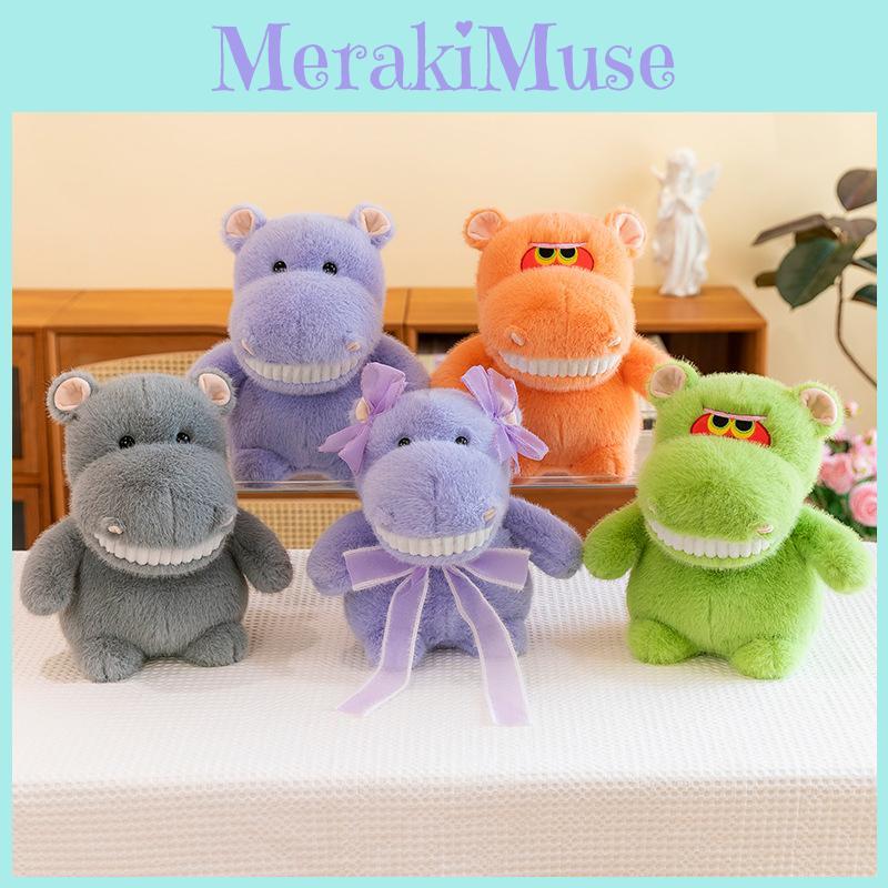 Animal Hippo Stuffed Plush Toy Cartoon Bow Doll Multiple Colors Children Gift