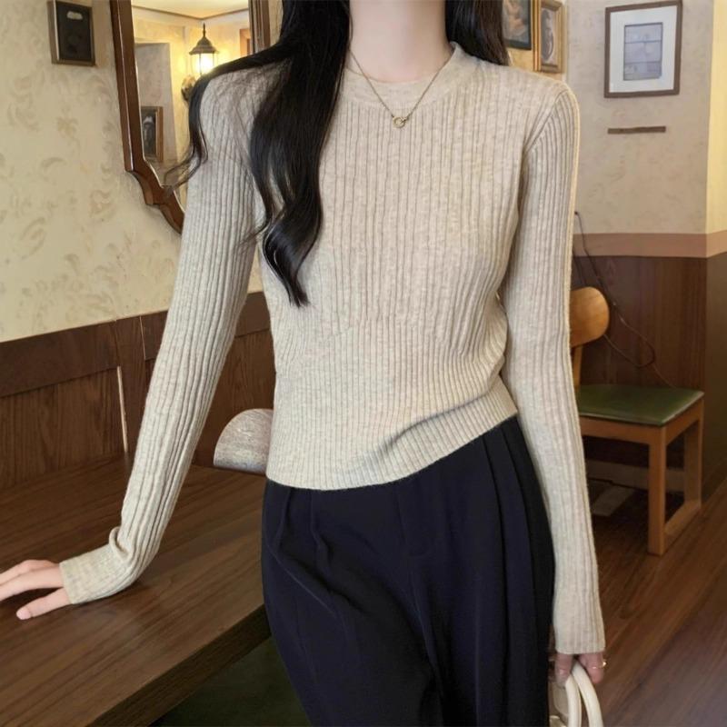 Весенний, Осенний и Зимний Дизайнерский Смысл Рубчик Облегающий Короткий Свитер Женский Внутренний Топ Энди Флис Низ Вязаный Свитер