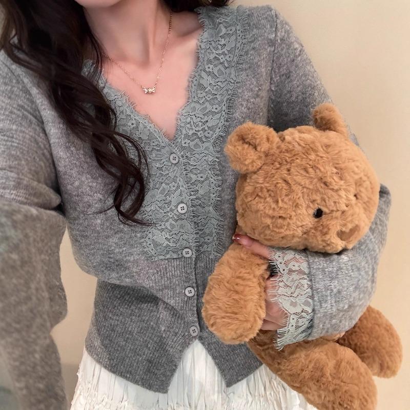 Кружевной вязаный кардиган с V-образным вырезом, женская верхняя вязаная кофта, женский осенне-зимний свитер с топом-майкой для ношения под низ