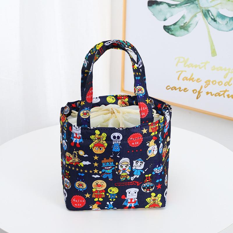 Эта термосумка имеет круглый дизайн на шнурке, изготовлена из прочной ткани Оксфорд, размеры 7,1 х 6,3 х 5,5 дюйма. Подходит для многоцелевого использования, идеально для хранения ланч-боксов, перекусов или мелких предметов. Его мультяшные узоры добавляют игривости для пикников на открытом воздухе или ежедневных поездок на работу.. Для сохранения внешнего вида протирайте влажной тканью.