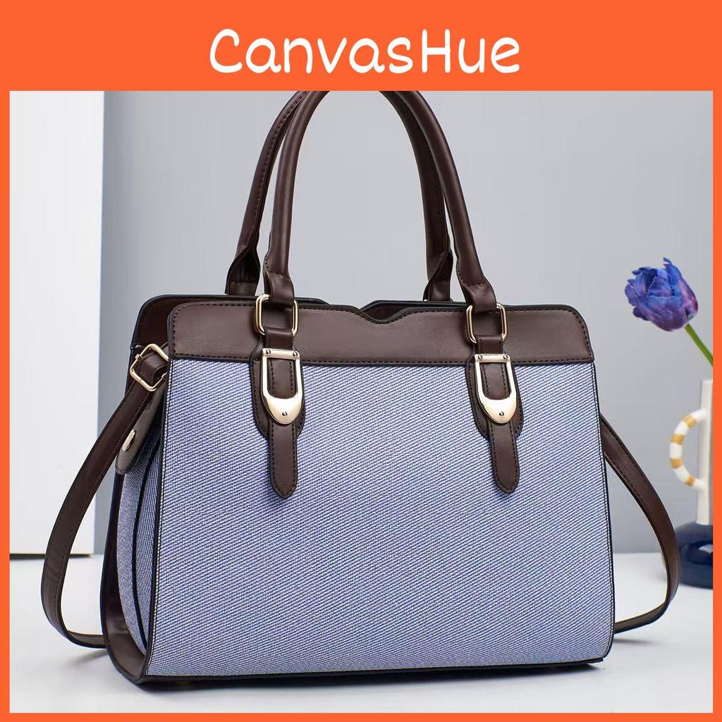 Stylish Versatile Canvas Patchwork Tote Bag In Gray Khaki Yellow Blue Brown And Colors Apricot