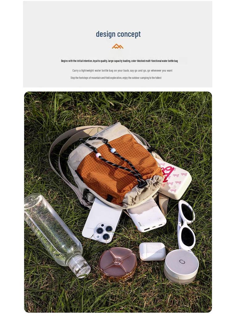 Сумка-кроссбоди с цветовыми блоками для занятий спортом на открытом воздухе, с отделением для бутылки с водой - Легкий рюкзак с затягивающимся шнурком
